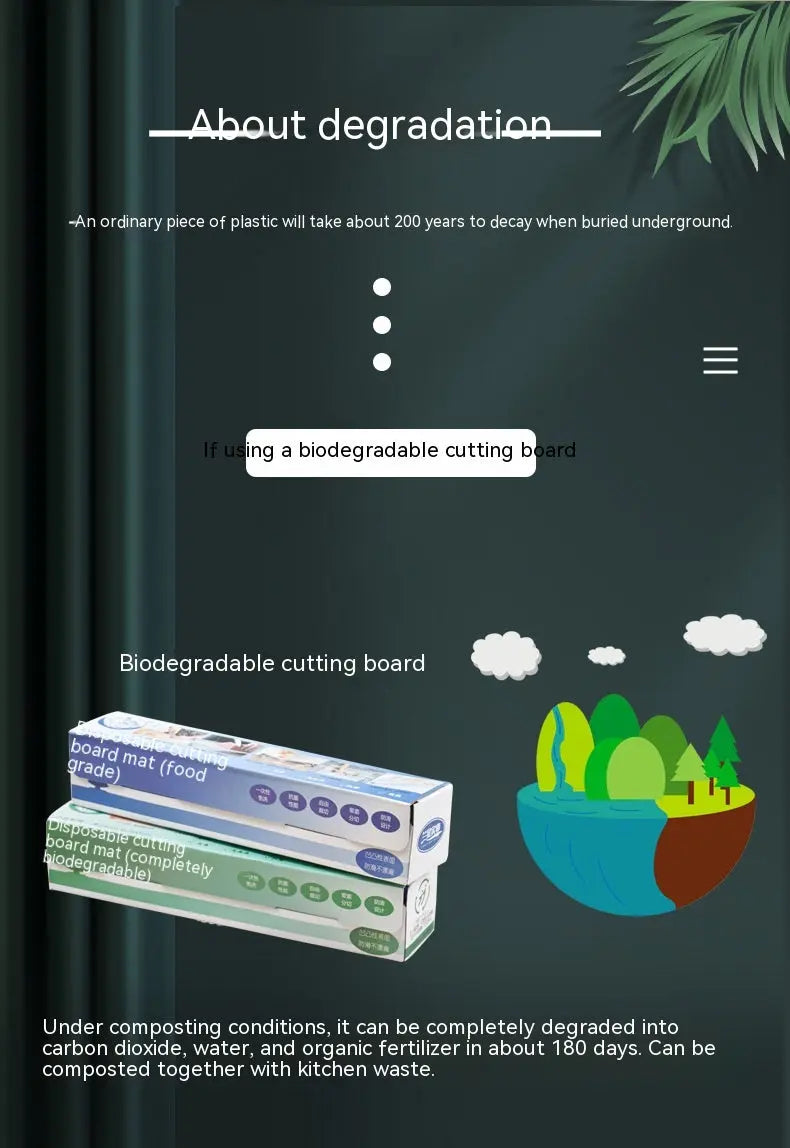 Ultimately, what sets our chopping board apart is its environmental-friendly promise. Each board is designed to be easily degradable, reducing your carbon footprint. Make the smart, sustainable choice with our Eco-friendly Degradable Disposable Kitchen Chopping Board.